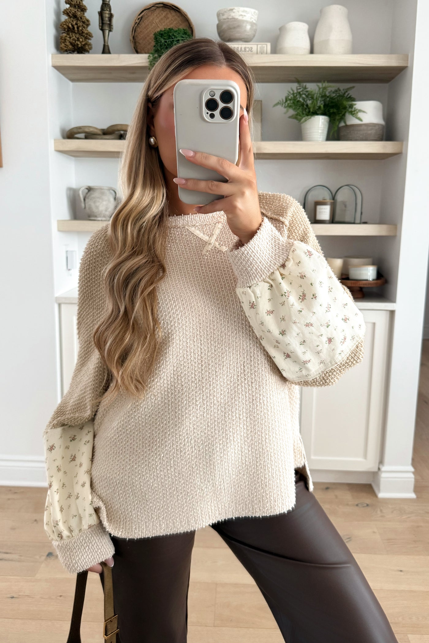 A charming favorite with a vintage twist ✨! This soft long-sleeve top stands out with its cozy textured knit body and adorable floral contrast sleeves. Light, feminine, and easy to wear, it brings the perfect mix of comfort and originality. The subtle floral cuffs add that romantic touch we’re obsessed with 💕 — a must-have piece to elevate your casual looks with zero effort.