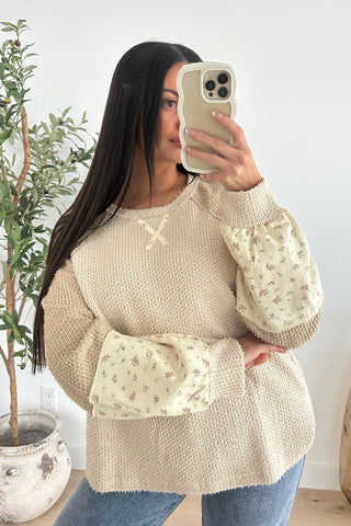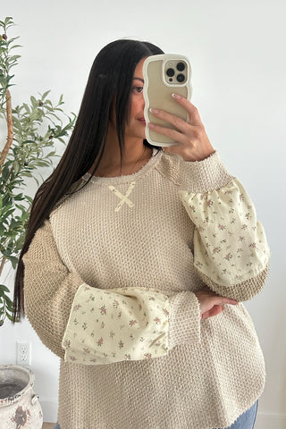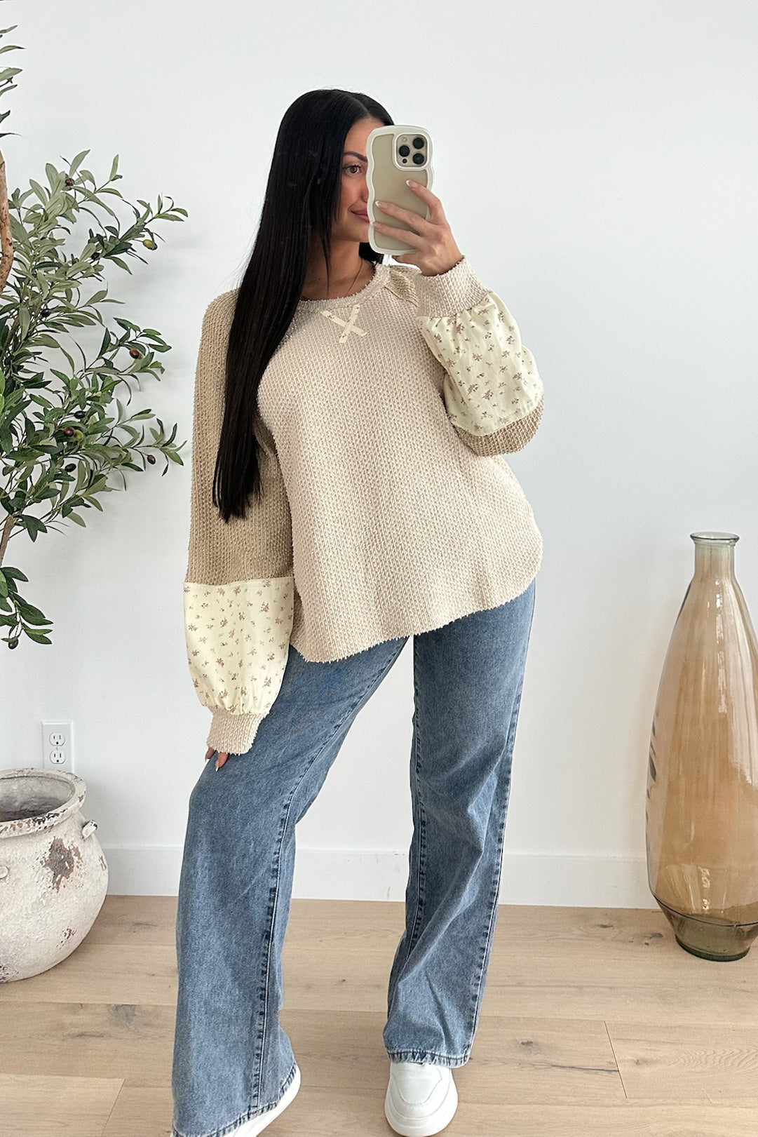 A charming favorite with a vintage twist ✨! This soft long-sleeve top stands out with its cozy textured knit body and adorable floral contrast sleeves. Light, feminine, and easy to wear, it brings the perfect mix of comfort and originality. The subtle floral cuffs add that romantic touch we’re obsessed with 💕 — a must-have piece to elevate your casual looks with zero effort.