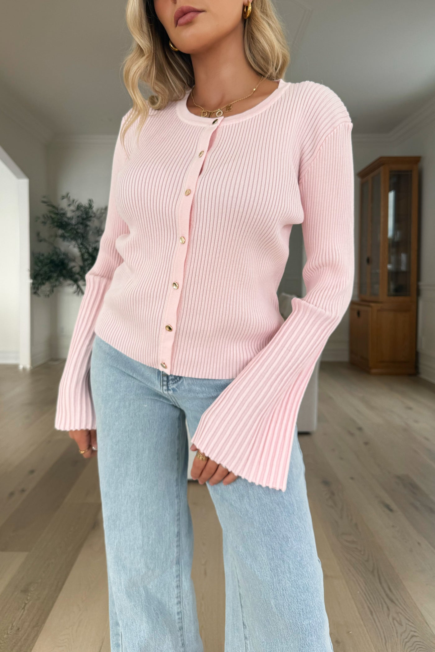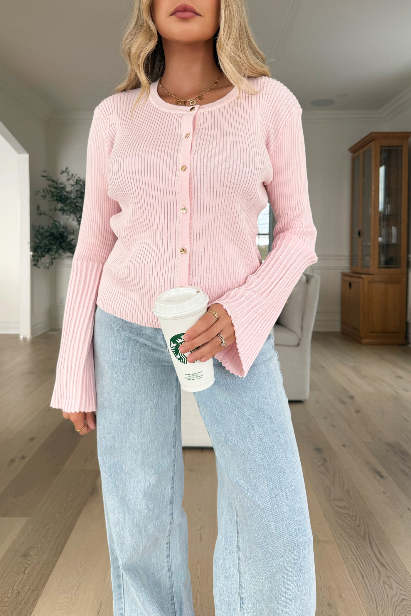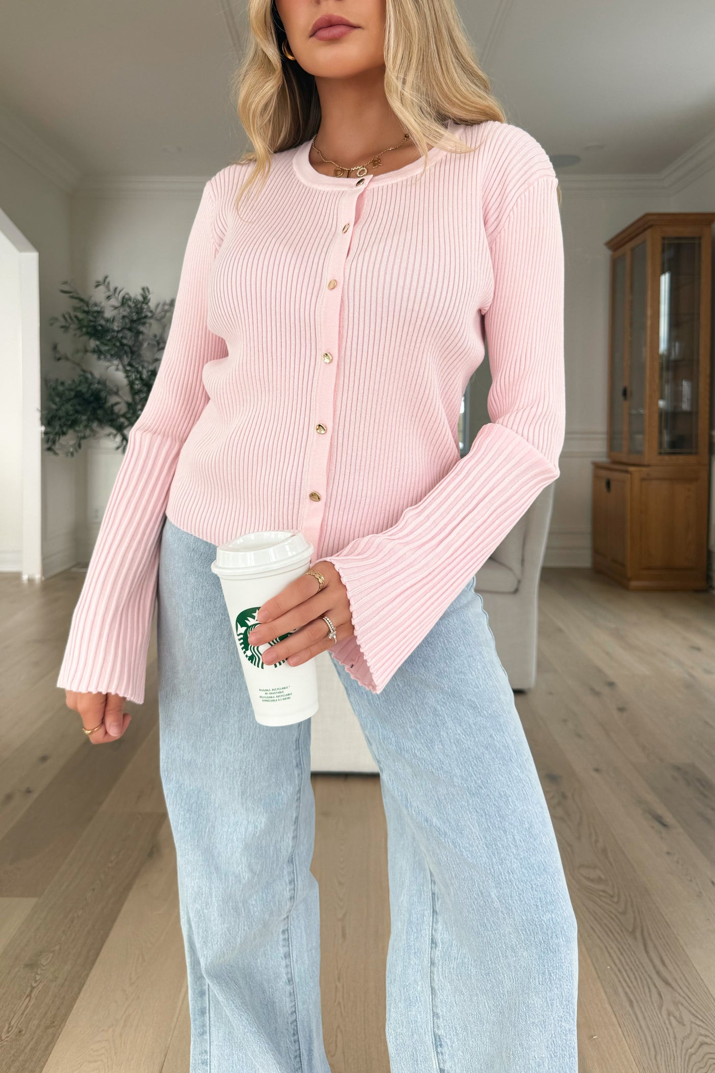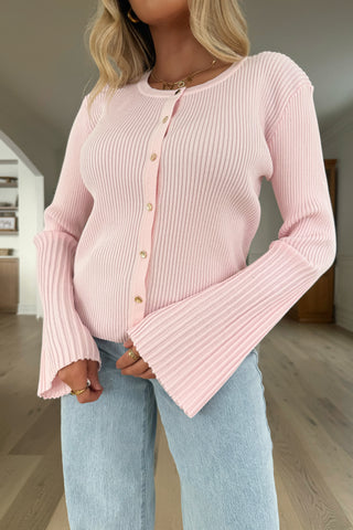 Your new go-to top for an easy and polished everyday look. This soft ribbed knit features a flattering button-front design and cute flared sleeves that instantly elevate a simple outfit. Comfortable, feminine and super easy to wear — you’ll reach for it again and again 🤍