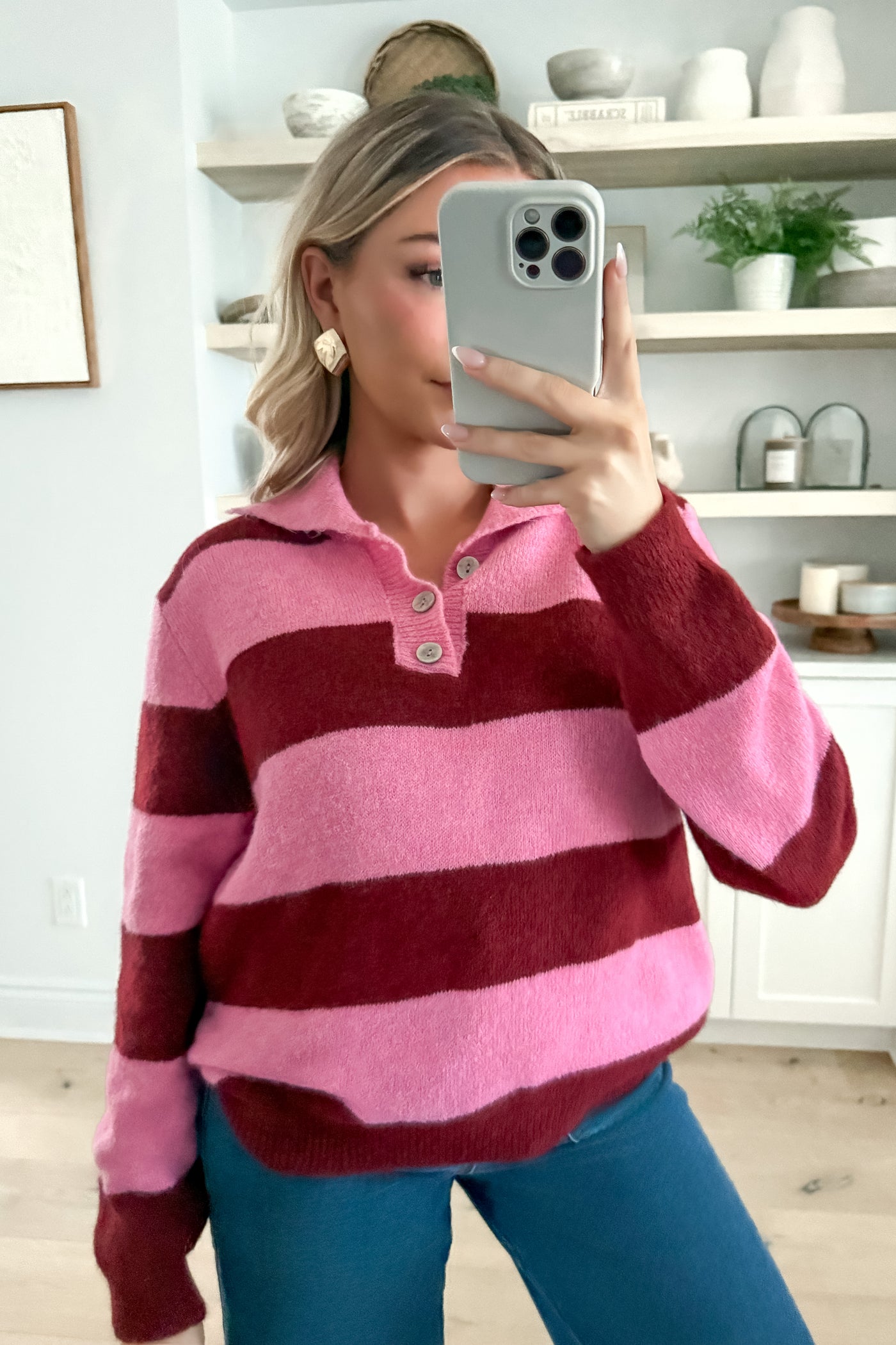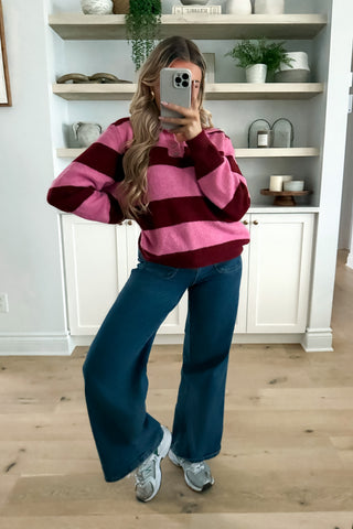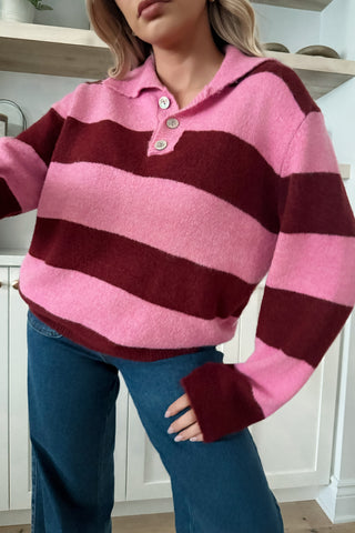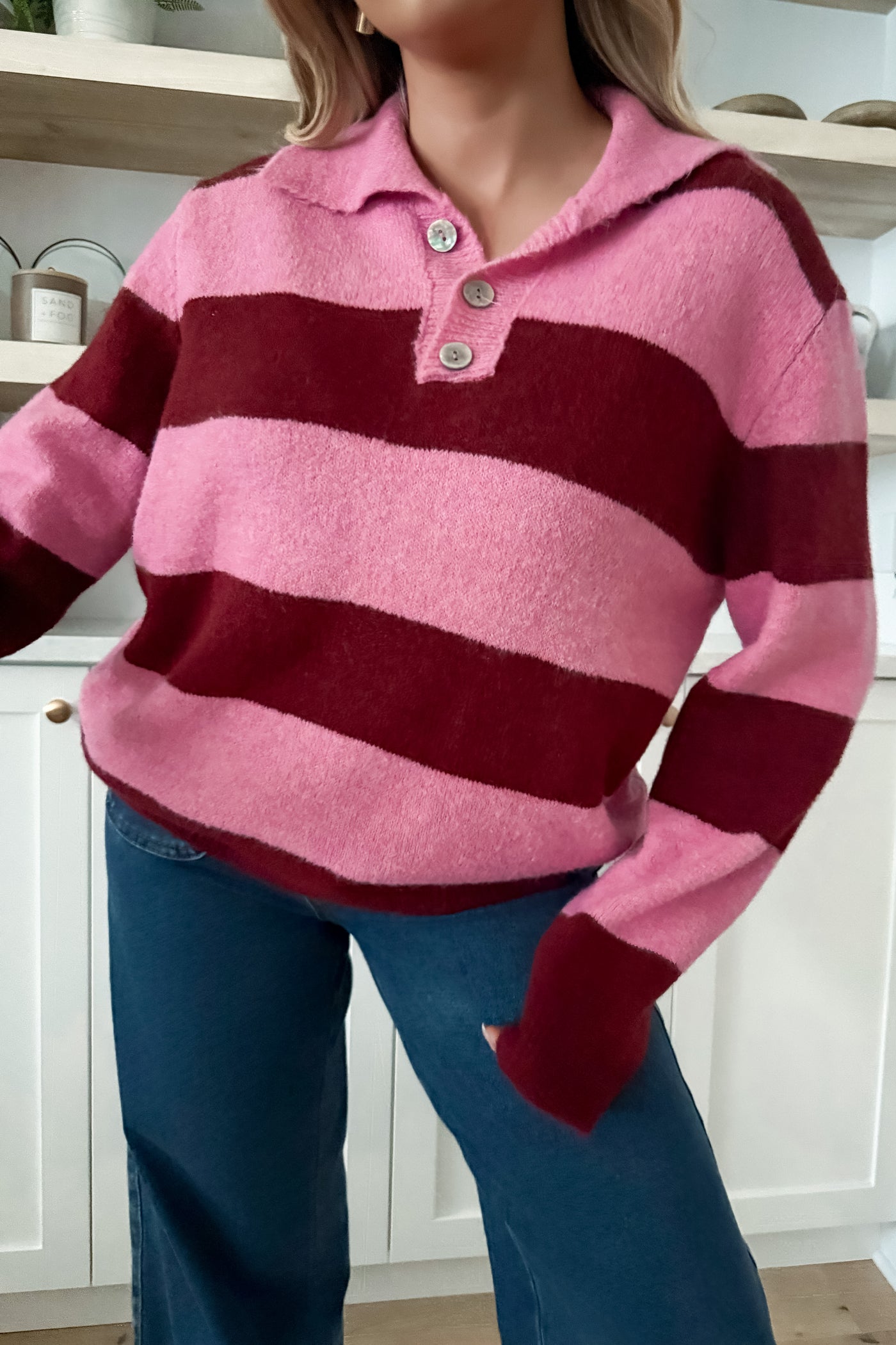 ELIANNE - Pink / Burgundy Sweater - ONE SIZE ( XS S M L )