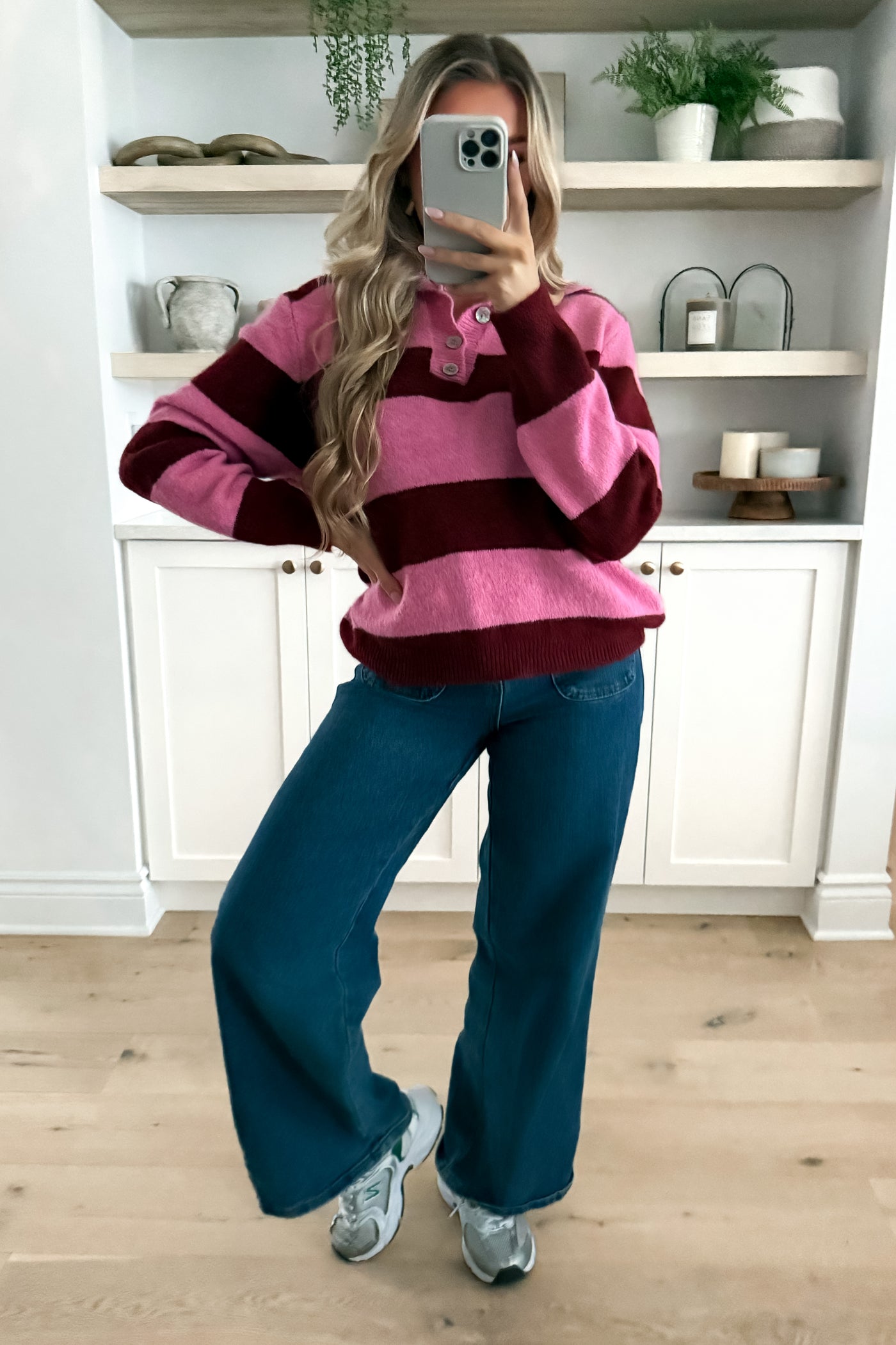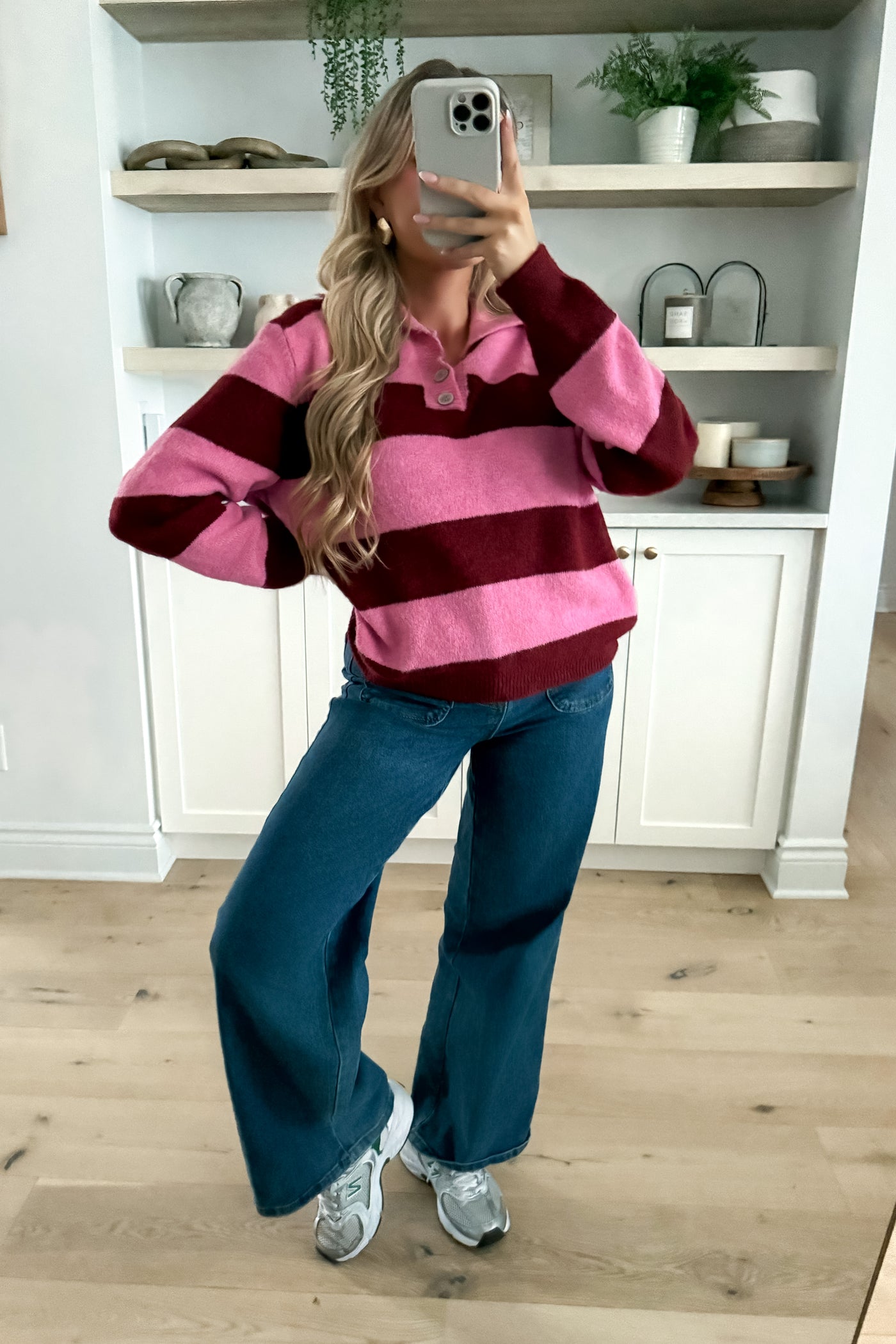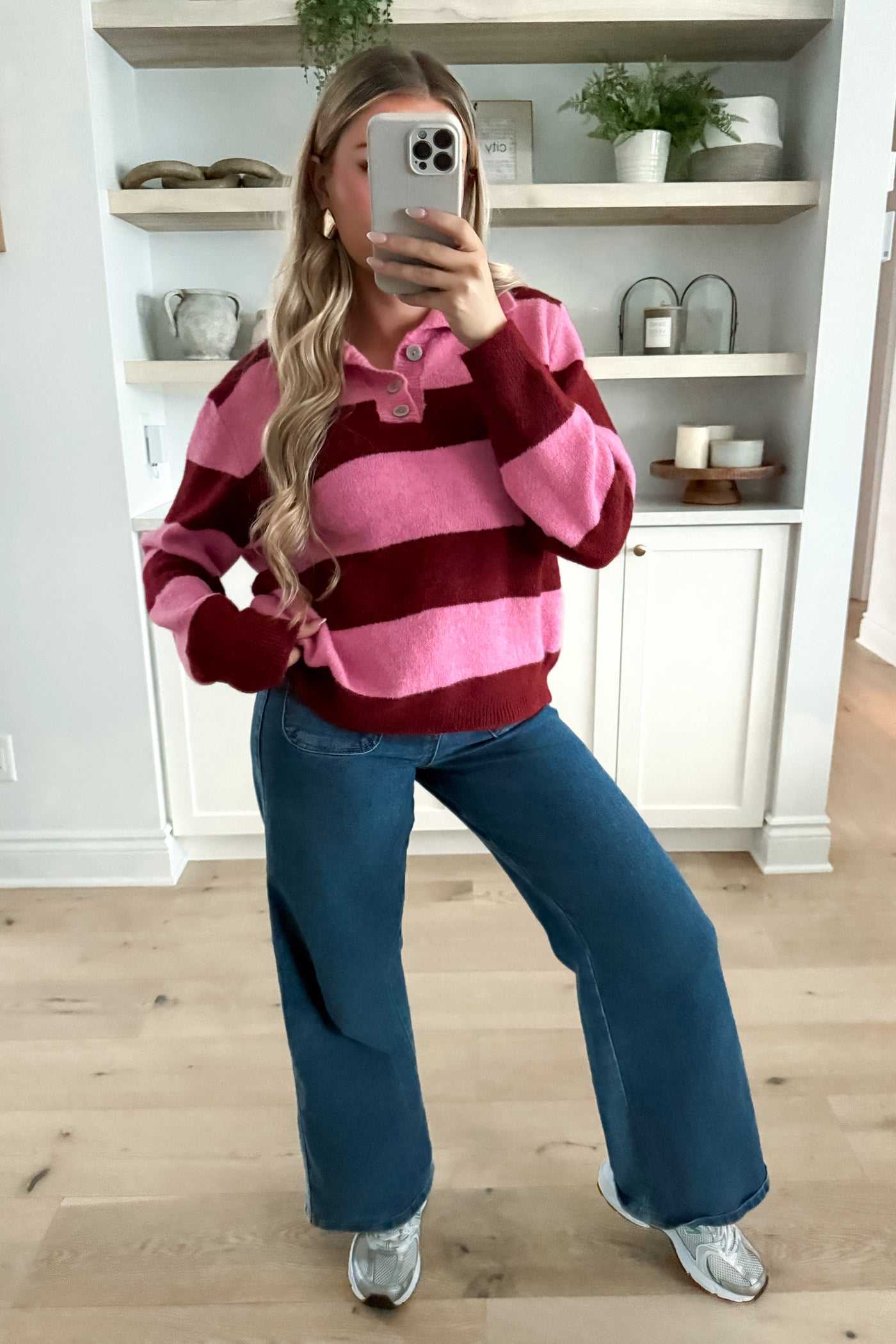 ELIANNE - Pink / Burgundy Sweater - ONE SIZE ( XS S M L )