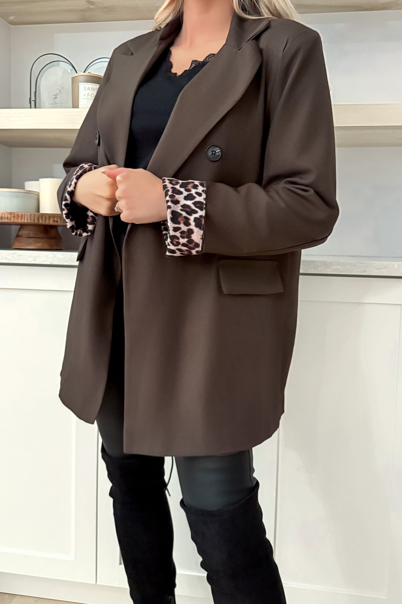 Leopard Trim Blazer – Chic & Bold