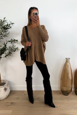 FABY - Long Brown Sweater - ONE SIZE ( XS S M L XL )