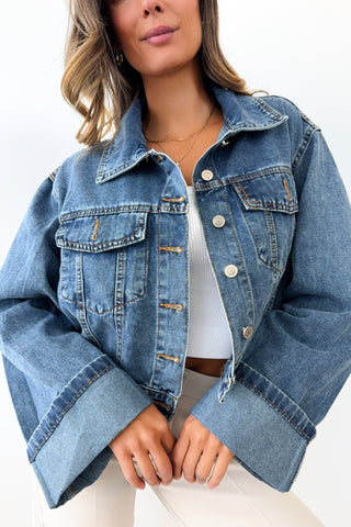 Cropped Flared-Sleeve Jean Jacket