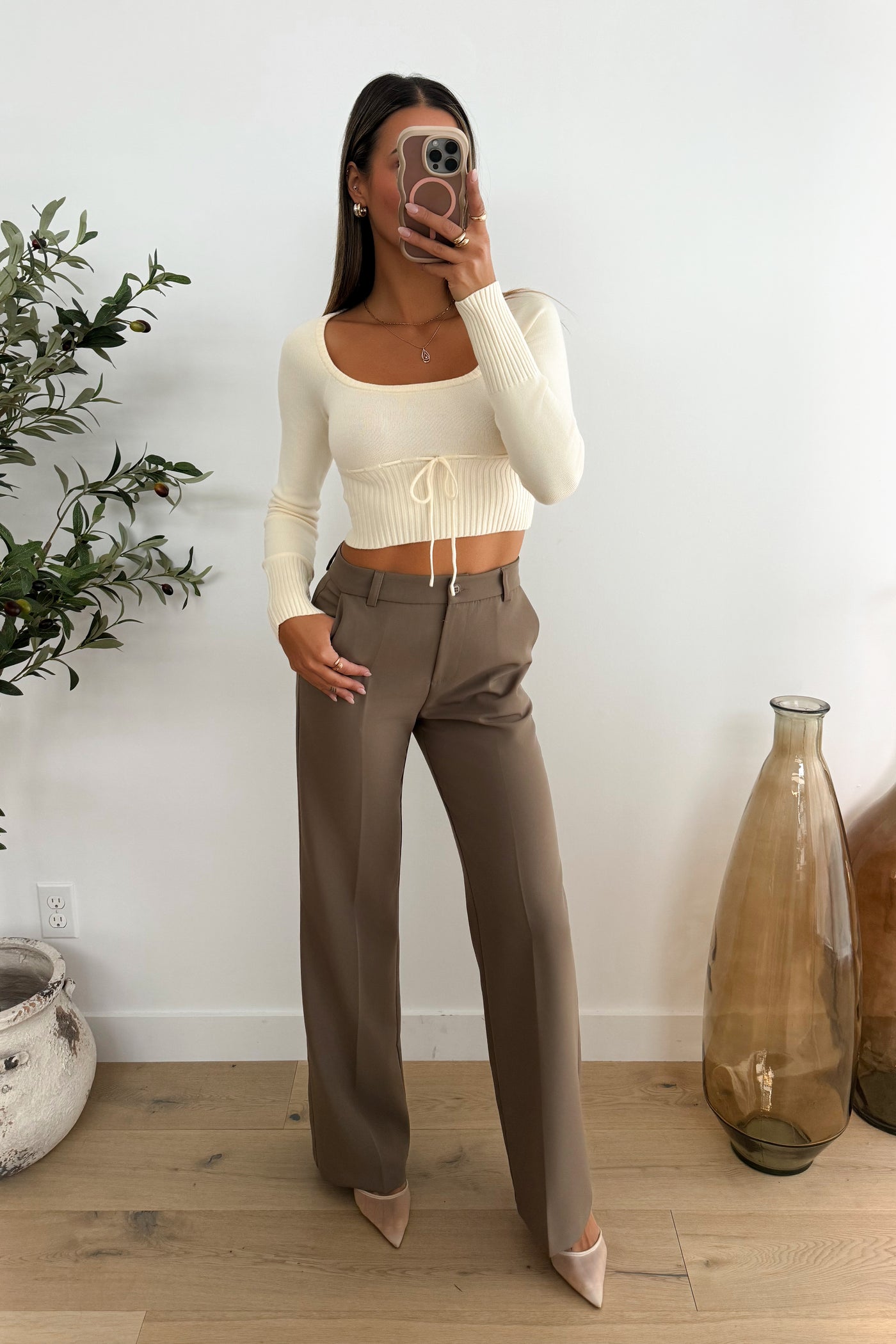 Haut en tricot à encolure carrée et détail de lien à l'avant – Doux, Féminin & Flatteur ✨